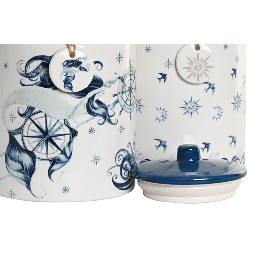 Burk DKD Home Decor Blå 15 x 15 x 21 cm Vit Dolomite (2 antal)